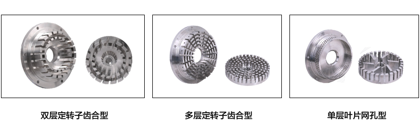 定子-轉(zhuǎn)子結(jié)構(gòu)的主流設(shè)計(jì)位定轉(zhuǎn)子齒合型和葉片網(wǎng)孔型兩種。剪切頭可設(shè)置為單圈或多圈、單級(jí)或多級(jí),且各種定子、轉(zhuǎn)子、可根據(jù)需要方便的進(jìn)行拆換和搭配組合,以獲得優(yōu)化的分散與混合效果。